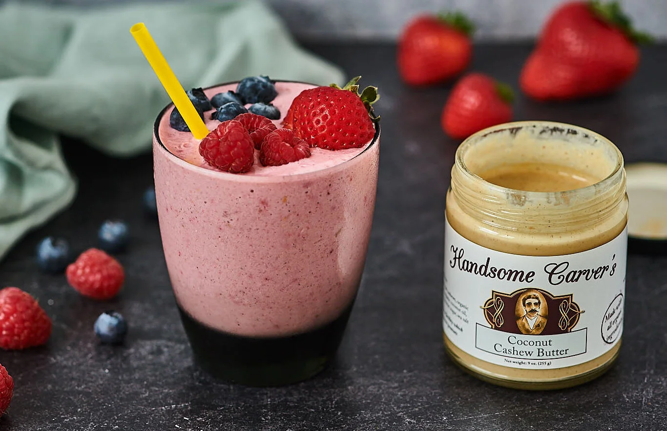 You might think you have the perfect smoothie recipe for summer, but unless you are using Handsome Carver’s Coconut Cashew Butter, you are mistaken. The cashew butter will give your smoothie the perfect thick body and the coconut will give the fruit their delicious tropical compliment.